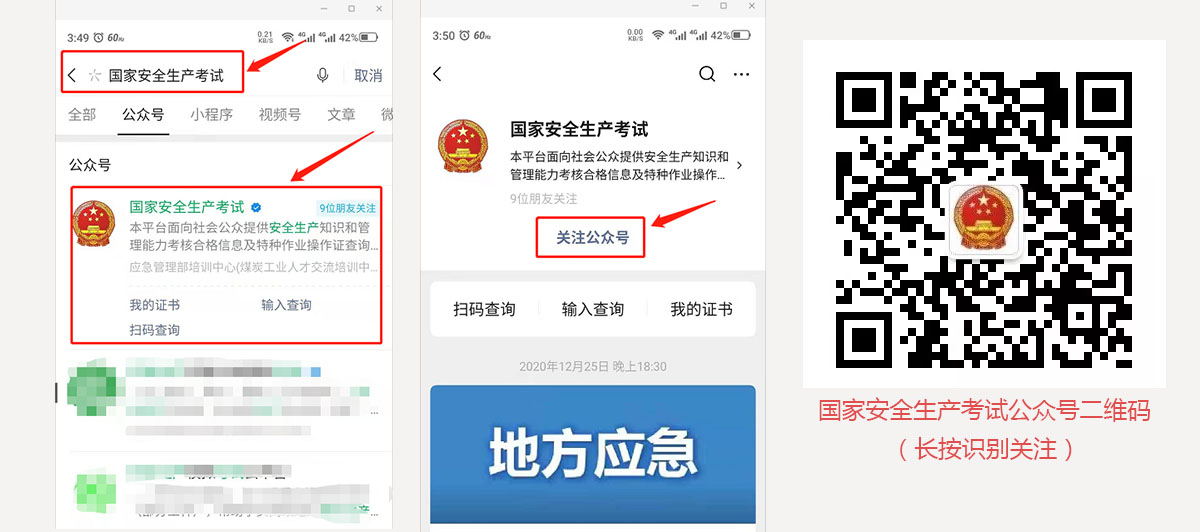 獲取新版證書的電子證書可通過微信公眾號“國家安全生產考試”或應急管理部官網兩種方式查詢下載。