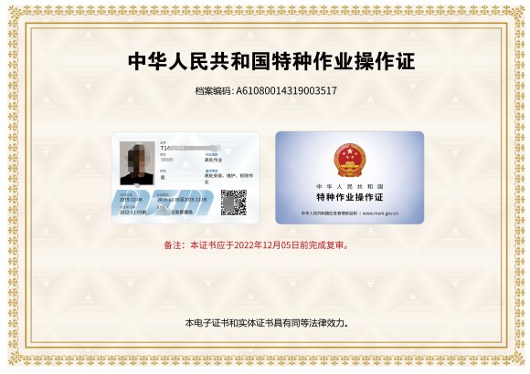 應急管理廳特種作業操作證電子版證書 更新時間:2021-01-25 12:34:17
