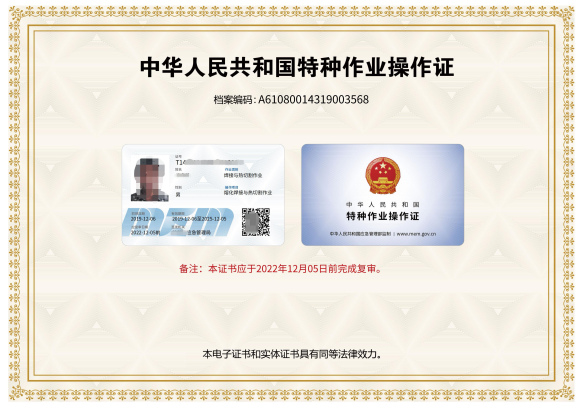新版特種作業操作證分為:PVC卡實體證書、電子證書,PVC卡實體證書根據申請人現實需要發放,電子證書是實體證書,與實體證書具有同等法律效力。